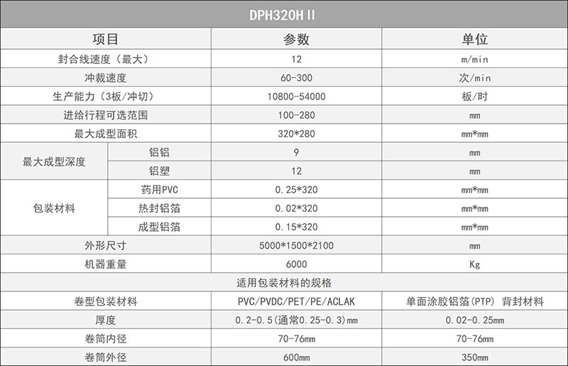 DPH320HⅡ全伺服高速輥板泡罩包裝機 參數(shù)表